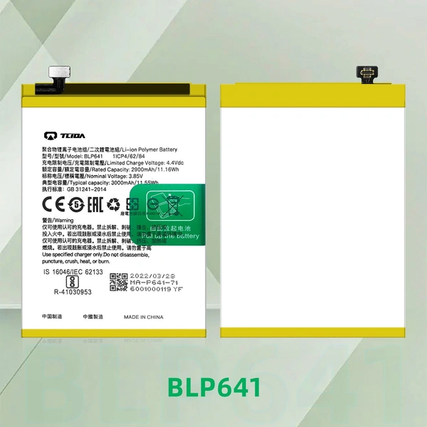 👉 In simple terms: BLP641 is the official battery model for OPPO A71 with around 2900 mAh–3000 mAh capacity, depending on exact version/brand.